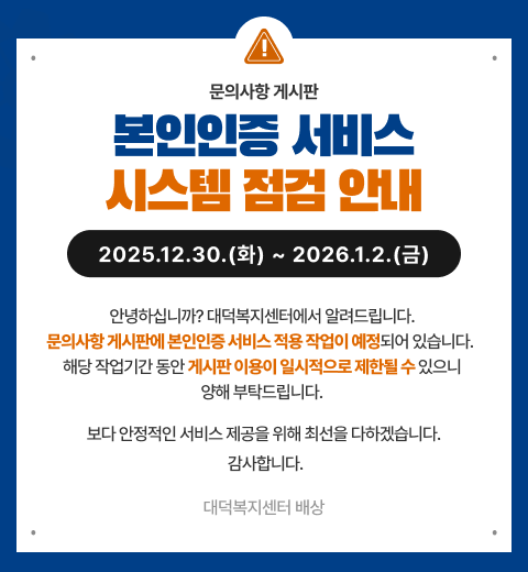 문의사항 게시판 본인인증 서비스 적용 작업 안내
