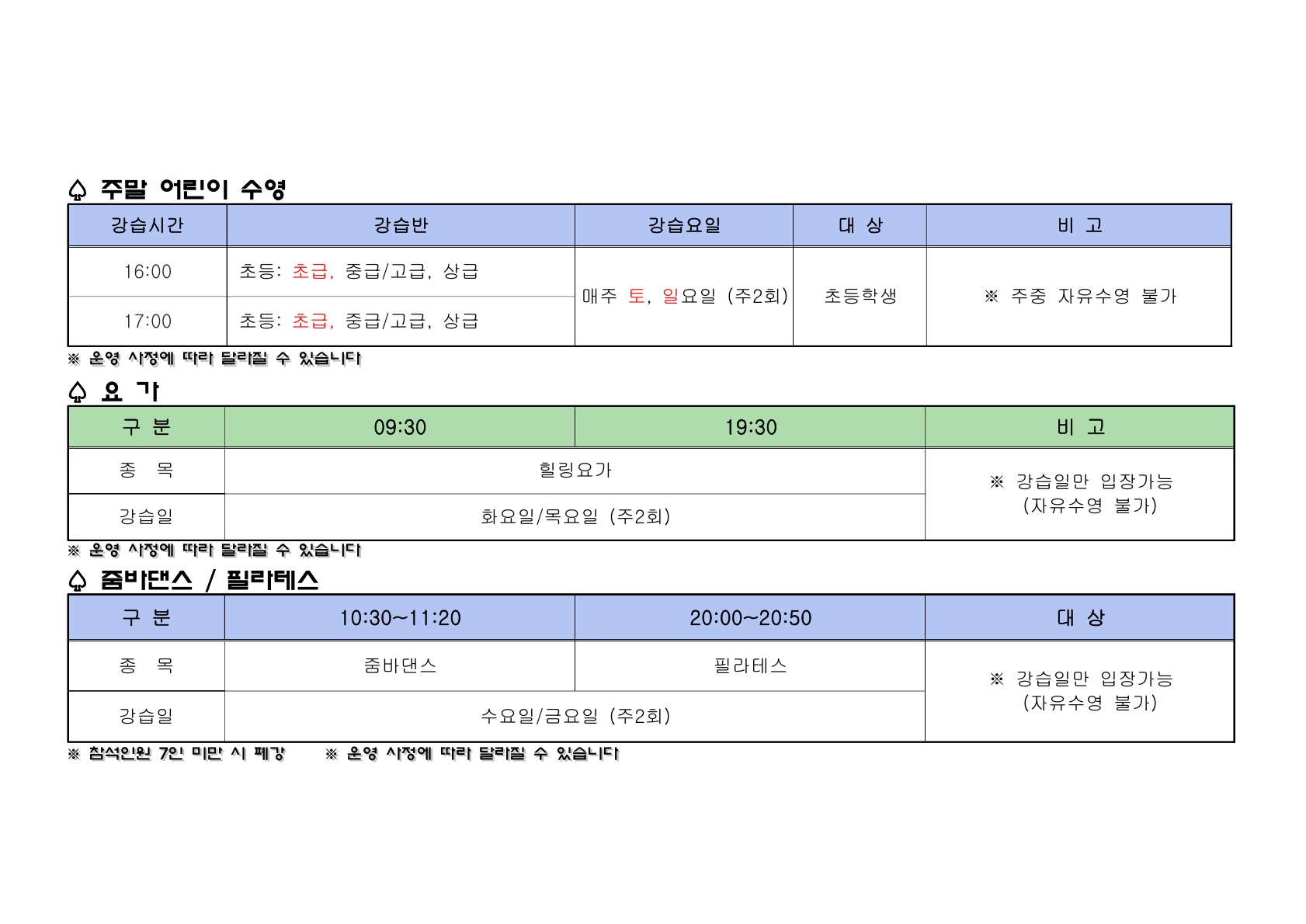 공지사항 공지사항의 작성자, 작성일, 조회수, 내용의 항목에 관한 표입니다. [전민스포츠센터] 전민스포츠센터 2026년 1월 강습프로그램 작성자전민스포츠센터 작성일2025-12-18 조회수724 다운로드.zip 2026__1월_강습프로그램_1.jpg(311.5 KB) 2026__1월_강습프로그램_2.jpg(218.7 KB) 목록